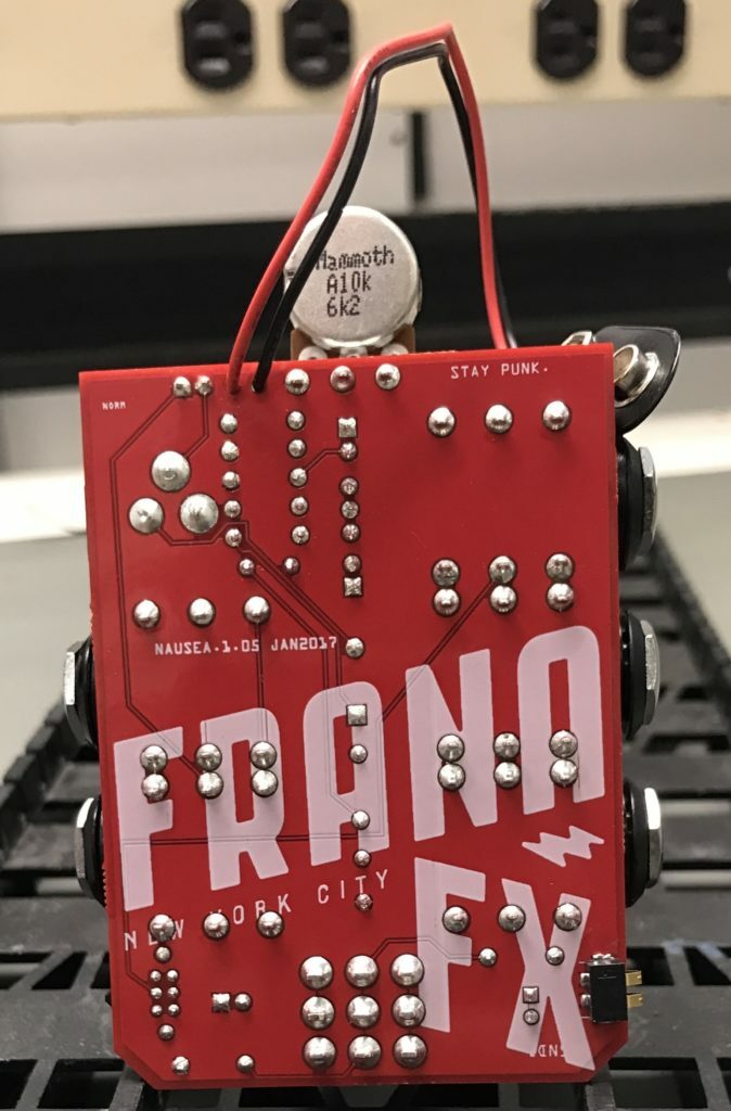 Based out of NYC, Frana Effects’ mission is to build guitar effects pedals with a passion for classic rock and punk metal sounds, at an affordable price. With the intent of reissuing forgotten and usual schematics, their first two models will be available in two different type of fuzz pedals, one tremelo and one “feedbacker” (this week’s Red Hot PCB) that will give you that classic, wavy tweaked sound!
